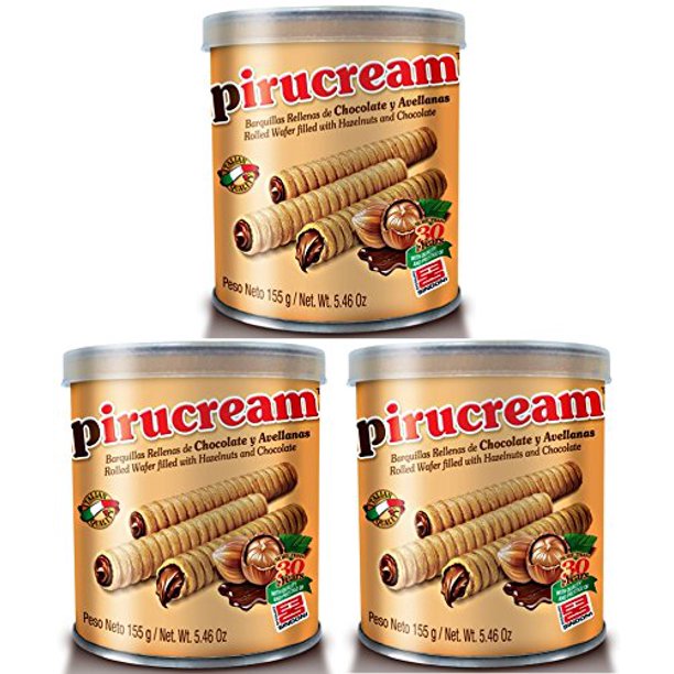 Three Pack Pirucream Rolled Wafers Chocolate Hazelnut Can 155 Grs 5 46 Oz Walmart Com