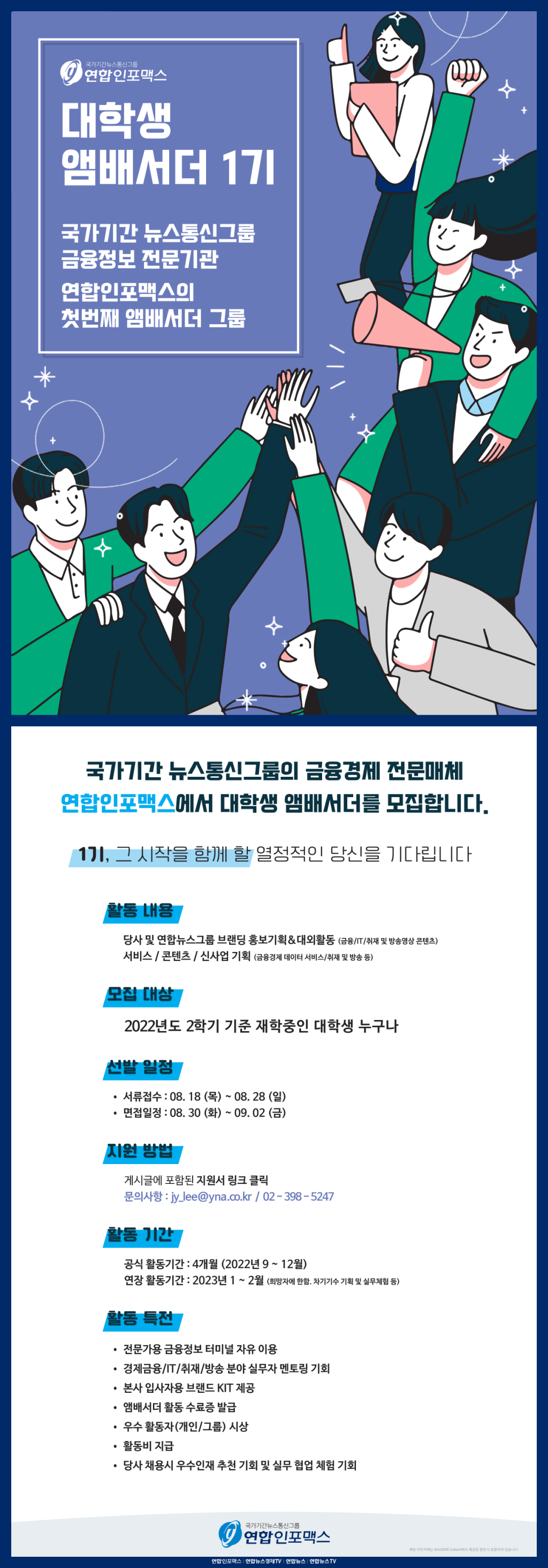 금융 언론 국가기간 뉴스통신그룹 연합인포맥스 대학생 앰배서더 모집 공모전 대외활동 링커리어